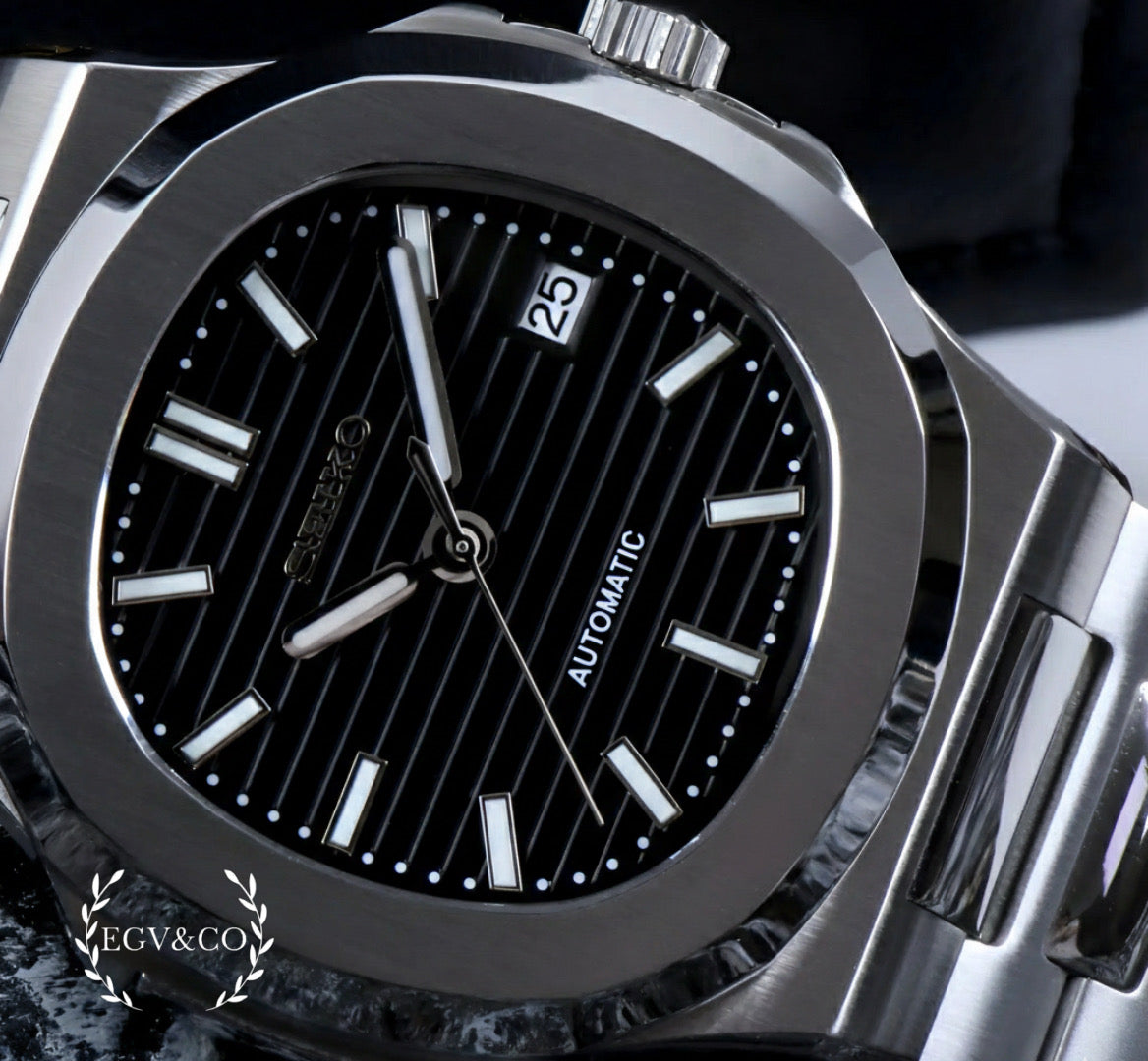 Seiko Nautilus Black — sofisticado, sobrio y con presencia imponente, destacando su esfera negra profunda que aporta elegancia, contraste y una estética moderna y versátil.